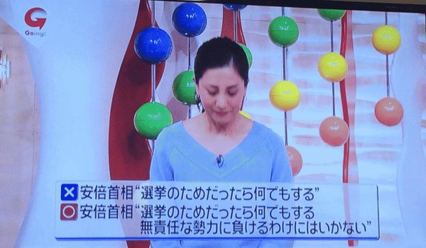 安倍首相は「選挙のためだったら何でもする、無責任な勢力に負けるわけにはいかない」と発言したが、テロップでは前半部分だけを切り出して「安倍首相『選挙のためだったら何でもする』」と表示。安倍首相が批判の対象としている野党ではなく、自民党が「選挙のためだったら何でもする」とも読めるようになっていた。